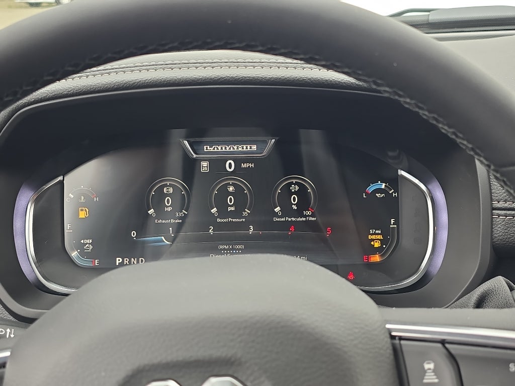 Laramie Level 1 Plus Equipment Group: Center Stop Lamp with Cargo View Camera; Rain Sensitive Windshield Wipers; Power Adjustable Pedals with Memory; LED Bed Lighting; Traffic Sign Recognition; Auto Power-Folding Mirrors; Adaptive Steering System; Exterior Mirrors with Heating Element; Auto Dim Exterior Mirror; Anti-Spin Differential Rear Axle; Mirror Running Lights; Drowsy Driver Detection; MOPAR Deployable Bed Step; Foam Bottle Insert (door Trim Panel); Power Adjustable Convex Aux Mirrors; Active Lane Management System; Forward and Reverse Utility Lights; Leather Trimmed Bucket Seats; Power Heated Fold Telescopic Mirrors with Memory; Exterior Mirrors with Supplemental Signals; Exterior Mirrors Courtesy Lamps; Remote Tailgate Release; MOPAR Spray in Bedliner; Auto High Beam Headlamp Control; Chrome Exterior Mirrors; Exterior Mirrors with Memory; Power Adjust Mirrors; 2nd Row in Floor Storage Bins; Power Telescoping Mirrors; Auto Dim Exterior Passenger Mirror; Auto Adjust in Reverse Exterior Mirrors. Quick Order Package 24H Laramie. Off Road Package: Front Performance Tuned Shock Absorbers; Transfer Case Skid Plate Shield; Hill Descent Control; Rear Performance Tuned Shock Absorbers. Sport Appearance Package: LT285/60R20E OWL On/off Road Tires; Center Hub; Body Color Grille Surround; Sport Performance Hood; Sport Decal; 20" X 8.0" Diamond Cut Face Aluminum Wheels. Chrome Flat Wheel-To-wheel Side Steps. Leather Trimmed Bucket Seats. 5th Wheel/gooseneck Towing Prep Group. Center Stop Lamp with Cargo View Camera. Transfer Case Skid Plate Shield. **Equipment listed is based on original vehicle build and subject to change. Please confirm the accuracy of the included equipment by calling the dealer prior to purchase.**