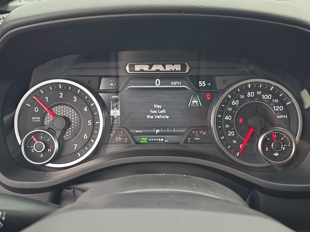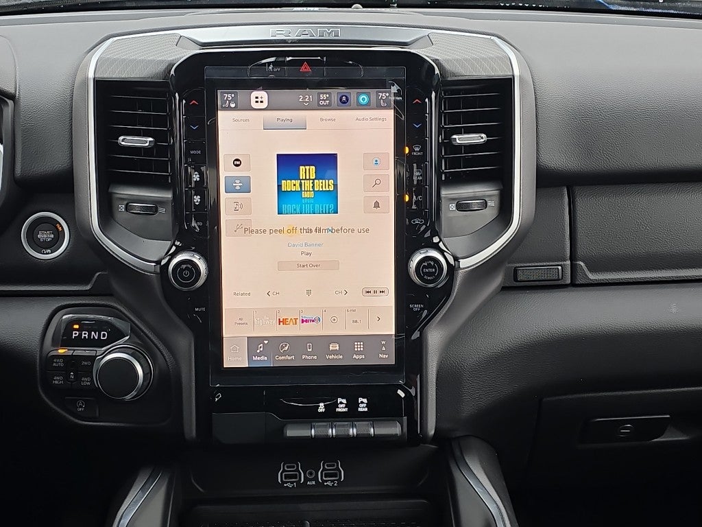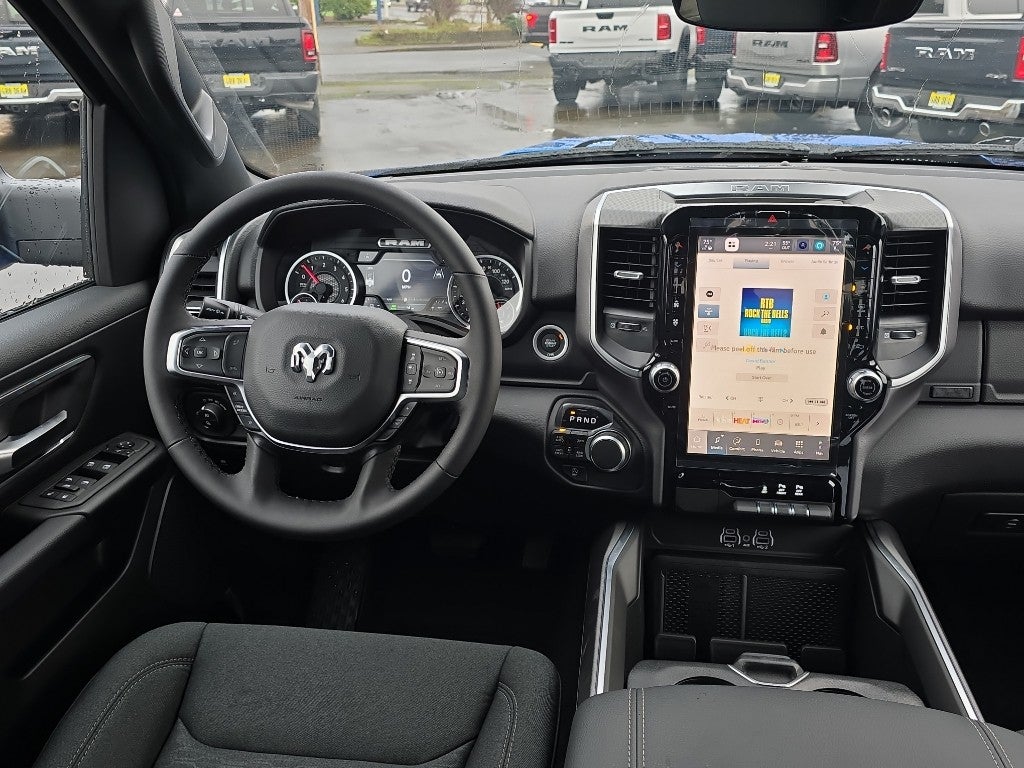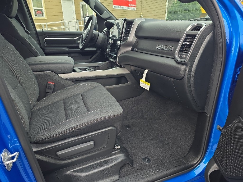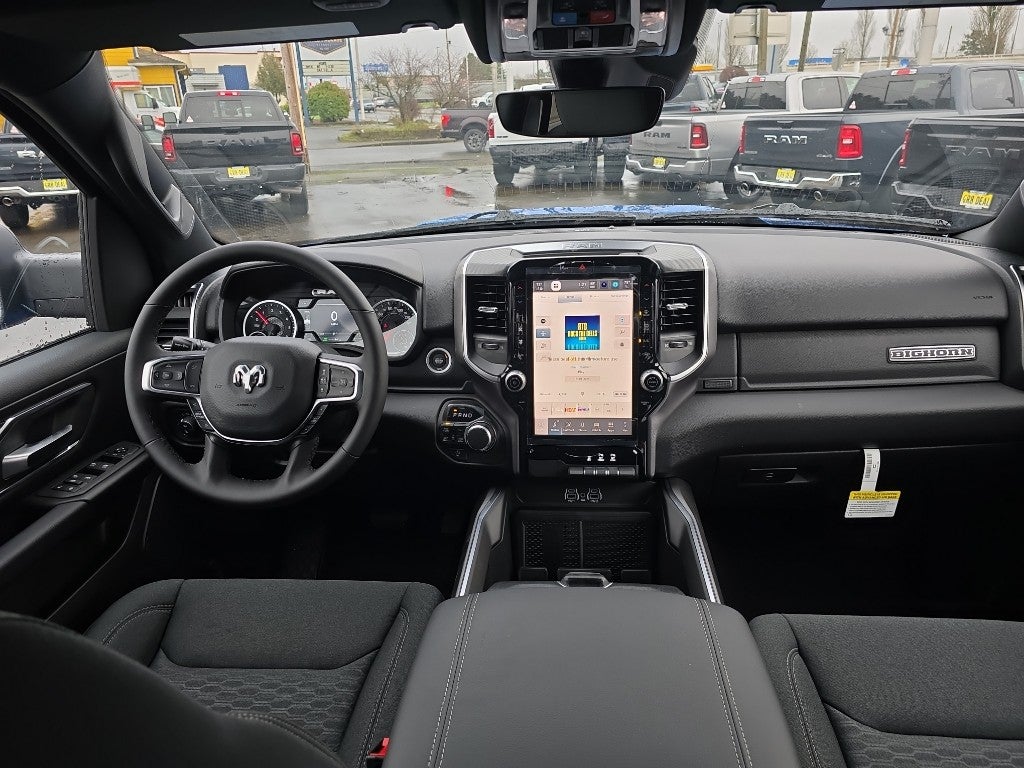 Quick Order Package 27Z Big Horn. Big Horn Level 2 Equipment Group: Google Android Auto; SiriusXM Radio Service; USB Host Flip; Power Adjustable Pedals; Leather Wrapped Steering Wheel; Integrated Voice Command with Bluetooth®; 12" Touchscreen Display; Glove Box Lamp; Auto Power-Folding Mirrors; 115V Auxiliary Rear Power Outlet; Media Hub with 2 Charge Only USBs; Heated Front Seats; Security Alarm; Black Premium Power Mirrors; Apple CarPlay; Premium Overhead Console; 9 Amplified Speakers with Subwoofer; Disassociated Touchscreen Display; Body Color Fender Flares; Remote Tailgate Release; 115V Auxiliary Power Outlet; LED Dome Lamp with On/off Switch; Universal Garage Door Opener; 2nd Row in Floor Storage Bins; Sun Visors with Illuminated Vanity Mirrors; LED Footwell Lighting; Rear Window Defroster; Integrated Center Stack Radio; Rear View Auto Dim Mirror; Rear Power Sliding Window; Connectivity - US/Canada; GPS Navigation; 4G LTE Wi-Fi Hot Spot; GPS Antenna Input; Overhead LED Lamps; Exterior Mirrors with Heating Element; Auto Dim Exterior Driver Mirror; SiriusXM with 360L; Global Telematics Box Module; Connected Travel and Traffic Services; Heated Steering Wheel; Configurable Drive Mode; 400W Inverter; HD Radio; Deluxe Cloth Bucket Seats; Uconnect 5 Navigation with 12.0" Display Radio; Exterior Mirrors with Supplemental Signals; Steering Wheel Mounted Audio Controls; Exterior Mirrors Courtesy Lamps; Air Conditioning ATC with Dual Zone Control; Cluster 7.0" TFT Color Display; Convex Wide-Angle Exterior Mirror Insert. Night Edition: 275/55R20 OWL All Season Tires; Accent Color Premium Power Mirrors; Exterior Mirrors with Supplemental Signals; Black Headlamp Bezels; Exterior Mirrors Courtesy Lamps; Grille Black Surround Black Mesh; Auto Power-Folding Mirrors; Exterior Mirrors with Heating Element; 20" X 9.0" Aluminum Painted Clad Wheels; Auto Dim Exterior Driver Mirror; Black Exterior Truck Badging; Anti-Spin Differential Rear Axle; Accent Color Door Handles; Accent Color Tailgate Handle; Black Interior Accents; Dual Exhaust with Black Tips; Body Color Front Bumper; Convex Wide-Angle Exterior Mirror Insert; Body Color Rear Bumper with Step Pads; Black Tail Lamp Bezels; RAM Grille Badge - Black; Black Painted Exterior Mirrors Caps. Quick Order Package 23Z Big Horn. 9 Amplified Speakers with Subwoofer. MOPAR Black Tubular Side Steps. Anti-Spin Differential Rear Axle. Hydro Blue Pearlcoat. 3.92 Rear Axle Ratio. **Equipment listed is based on original vehicle build and subject to change. Please confirm the accuracy of the included equipment by calling the dealer prior to purchase.**