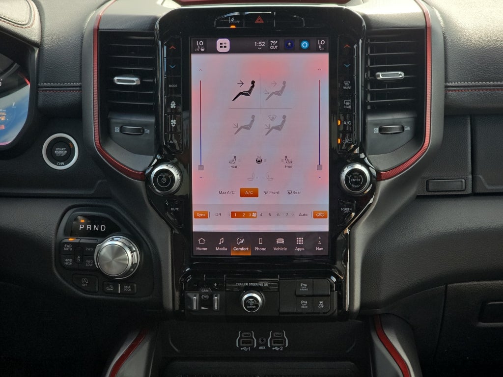 An off-road package is installed on this model so you are ready for your four-wheeling best. This Ram 1500 features a hands-free Bluetooth® phone system. You'll never again be lost in a crowded city or a country region with the navigation system on the Ram 1500. This unit offers Apple CarPlay for seamless connectivity. Never get into a cold vehicle again with the remote start feature on this unit. The Ram 1500's Forward Collision Warning feature alerts drivers to potential front-end collisions. This 2026 Ram 1500 has automated speed control that adjusts to maintain a safe following distance, enhancing highway driving convenience. Keep your hands warm all winter with a heated steering wheel in the vehicle . This 1/2 ton pickup offers Android Auto for seamless smartphone integration. See what's behind you with the back up camera on this Ram 1500. Set the temperature exactly where you are most comfortable in this vehicle. The fan speed and temperature will automatically adjust to maintain your preferred zone climate.