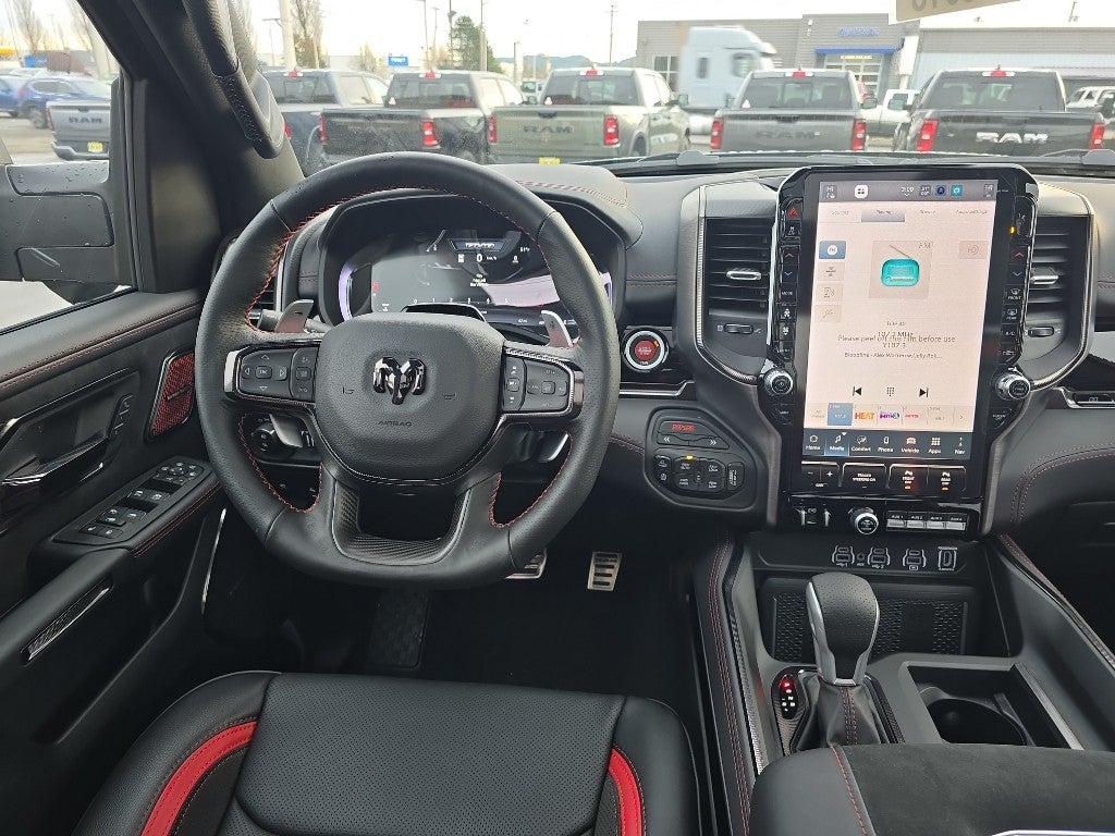 This 1/2 ton pickup offers Apple CarPlay for seamless connectivity. Keep your hands warm all winter with a heated steering wheel in this 2026 Ram 1500 . This model has a premium sound system installed. The leather seats in the vehicle are a must for buyers looking for comfort, durability, and style. Bluetooth® technology is built into this 1/2 ton pickup, keeping your hands on the steering wheel and your focus on the road. This model has auto-adjust speed for safe following. See what's behind you with the back up camera on this 2026 Ram 1500 . This model comes equipped with Android Auto for seamless smartphone integration on the road. Never get into a cold vehicle again with the remote start feature on this unit. You'll never again be lost in a crowded city or a country region with the navigation system on this 1/2 ton pickup. with XM/Sirus Satellite Radio you are no longer restricted by poor quality local radio stations while driving this 2026 Ram 1500 . Anywhere on the planet, you will have hundreds of digital stations to choose from.