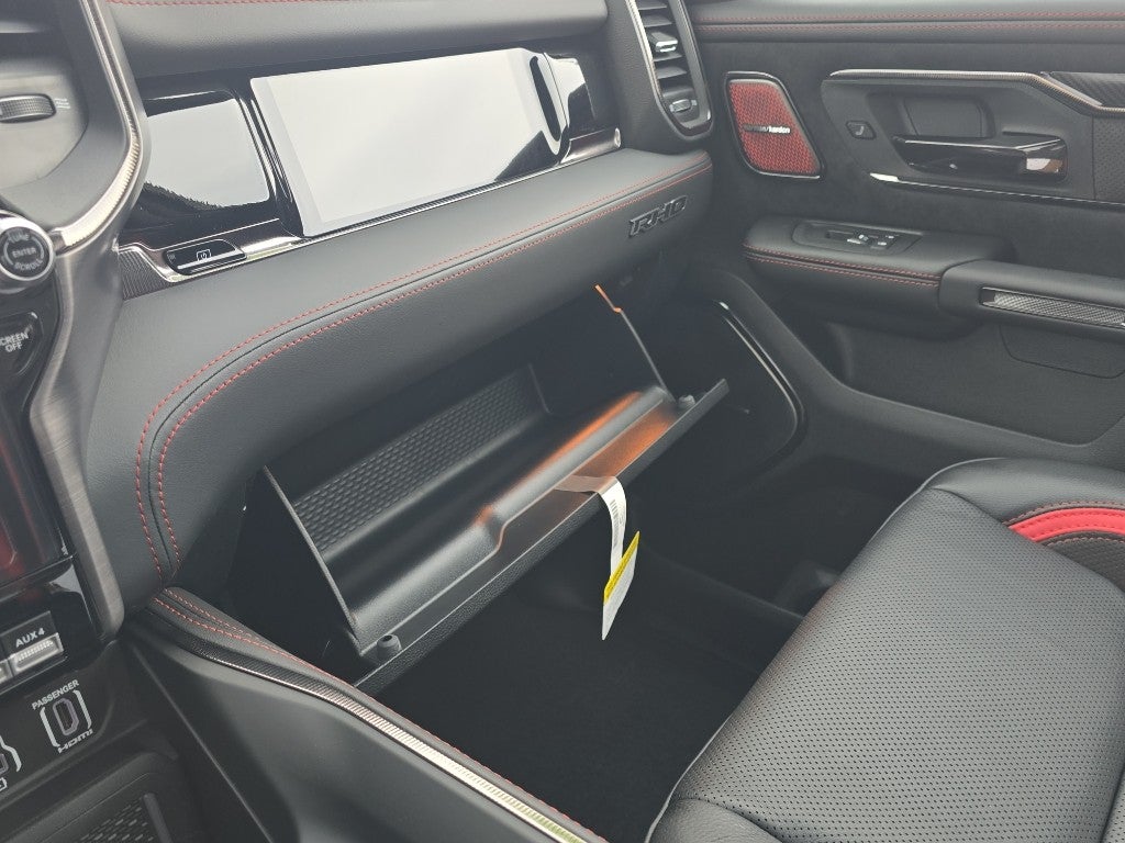 Bed Utility Group: MOPAR Deployable Bed Step; MOPAR 4 Adjustable Cargo Tie-Down Hooks; Exterior 115V AC Outlet. Quick Order Package 22Y RHO. RHO Level 1 Equipment Group: Full Length Premium Upgraded Floor Console; SiriusXM Radio Service; USB Host Flip; Surround View Camera System; Rain Sensitive Windshield Wipers; Integrated Center Stack Radio; LED CHMSL Lamp; Power Adjustable Pedals with Memory; Front Passenger Interactive Display; Integrated Voice Command with Bluetooth®; Connectivity - US/Canada; Traffic Sign Recognition; GPS Navigation; 4G LTE Wi-Fi Hot Spot; Hands-Free Active Driving Assist System; Front Passenger Power Seat Back Massage; Head Up Display; Connected Travel and Traffic Services; Evasive Steer Assist; Heated Second Row Seats; Drowsy Driver Detection; Driver Power Seat Back Massage; Intersection Collision Assist System; Disassociated Touchscreen Display; Leather/carbon Flat-Bottom Steering Wheel; HD Radio; Smartphone as a Key Capable; 14.4" Touchscreen Display; Driver/passenger Wrapped Assist Handles; Dual Wireless Charging Pad; Uconnect 5 Nav with 14.4" Display; Ventilated Rear Seats; Rear 60/40 Folding Split Recline Seat; 240 Amp Alternator; Ventilated Front Seats; Harman/kardon 19 Speaker Premium Sound; Premium Wrapped Instrument Panel Bezel; Exterior Mirrors with Memory; Luxury Front Door Trim Panel; Real Carbon Fiber Interior Accents; Driver Seat Memory; Power Tailgate; Radio/driver Seat/mirrors/pedals Memory; Digital Rearview Mirror; 12-Way/1-way Trailer Connector. Trailer Tow Group: Trailer Light Check; Trailer Reverse Steering Control; Trailer Tire Pressure Monitoring System. Dual-Pane Panoramic Sunroof. Red Interior Accents. Black Power-Fold Trailer Tow Mirrors. Forged Blue Metallic. **Equipment listed is based on original vehicle build and subject to change. Please confirm the accuracy of the included equipment by calling the dealer prior to purchase.**
