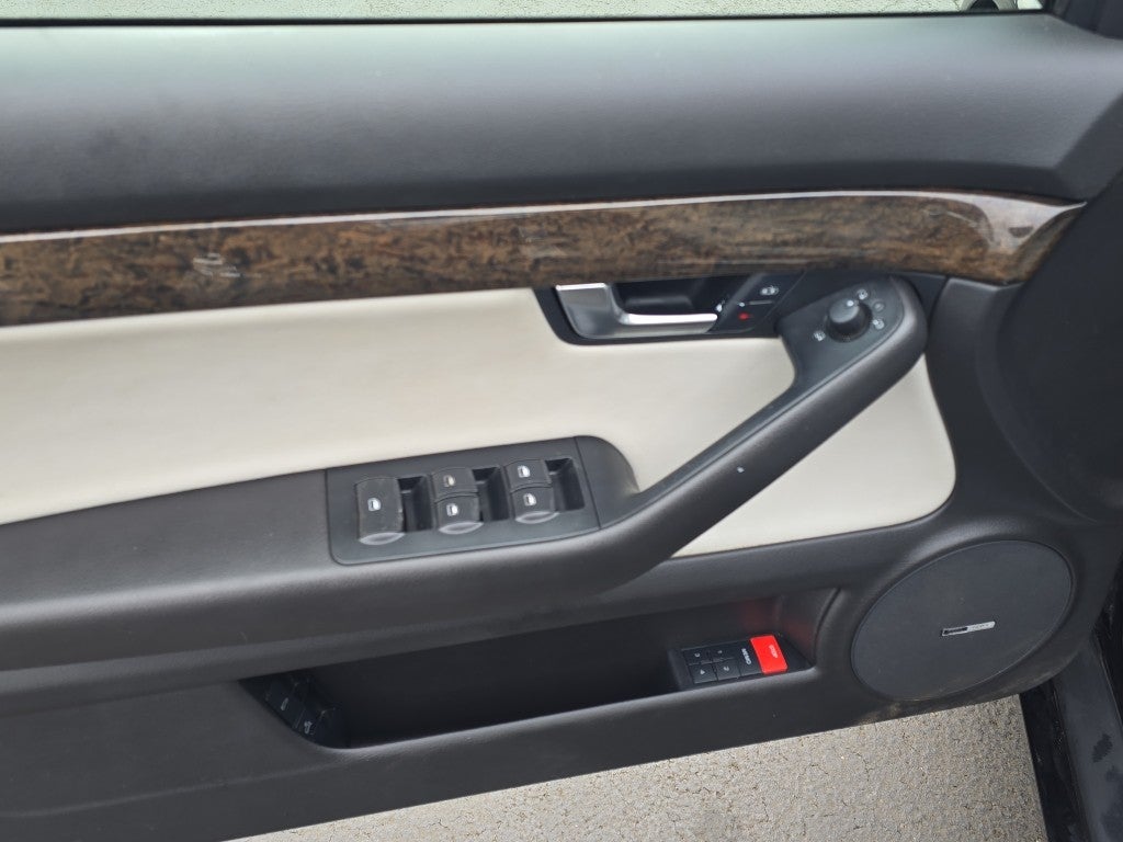The leather seats in this unit are a must for buyers looking for comfort, durability, and style. This unit has a clean AutoCheck report. Night driving with HID Xenon headlamps is a breeze in it. It offers Automatic Climate Control for personalized comfort. This vehicle has a V8, 4.2L high output engine. The vehicle is painted with a sleek and sophisticated black color. Maintaining a stable interior temperature in the vehicle is easy with the climate control system. This Audi S4 is equipped with all wheel drive. This 2005 Audi S4 features cruise control for long trips. This model has fog lights for all weather conditions. The high efficiency automatic transmission shifts smoothly and allows you to relax while driving. Help alleviate lower back pain with the driver seat lumbar support in this model. The Electronic Stability Control will keep you on your intended path. Enjoy the tried and true gasoline engine in the Audi S4.